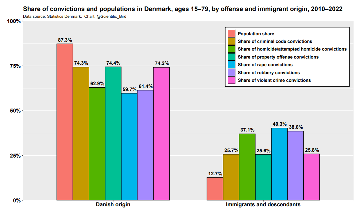 This is the first post in a new series in which I will summarize relevant statistics regarding immigration and crime in a given country. The first part in the series will cover Denmark. I have already reviewed a lot of the relevant statistics, but more ground will be covered here. My initial plan is to cover the Nordic countries at least1, though I may decide to expand the series further.