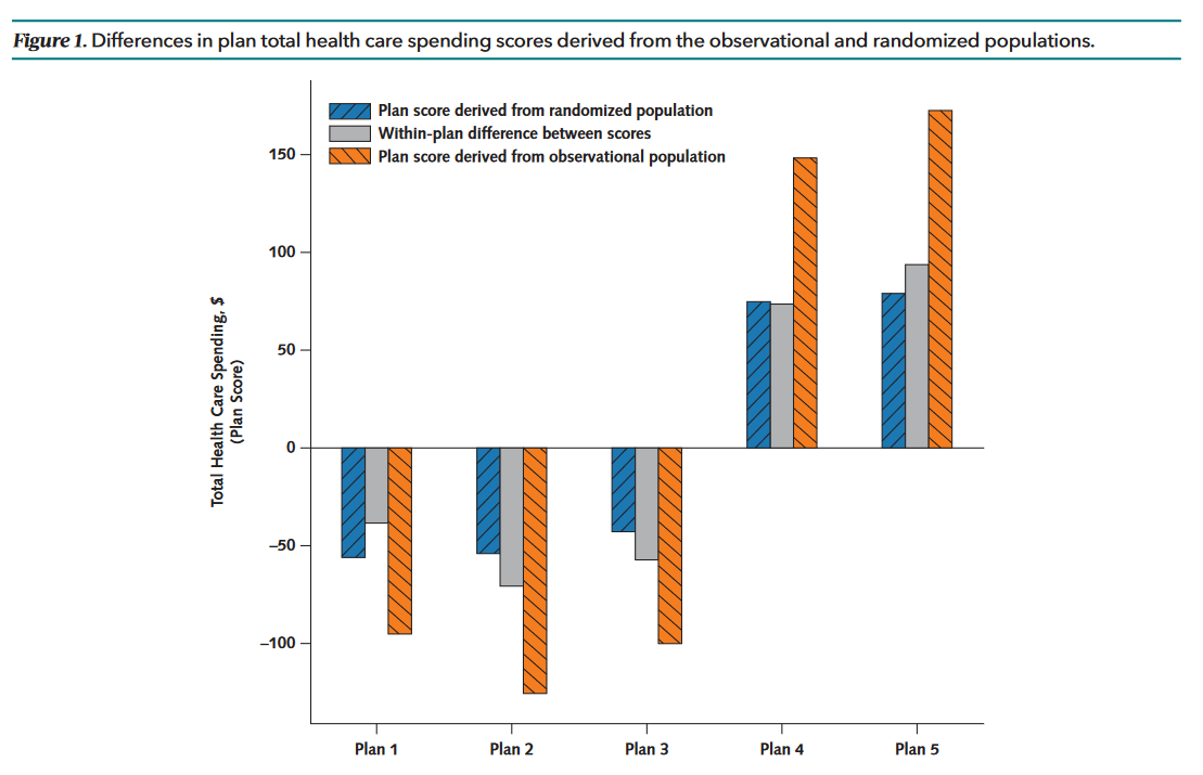 Consider, for example, one study analyzing the performance or “value” of various health plans (Wallace et al., 2022). The basic issue is that people may select non-randomly into different health plans, creating spurious associations between health plans and performance indicators. Thus, researchers have attempted to control for confounding variables. But was this sufficient? No. By comparing random allocation estimates from the observational adjusted estimates, residual confounding remained substantial in the observational studies.