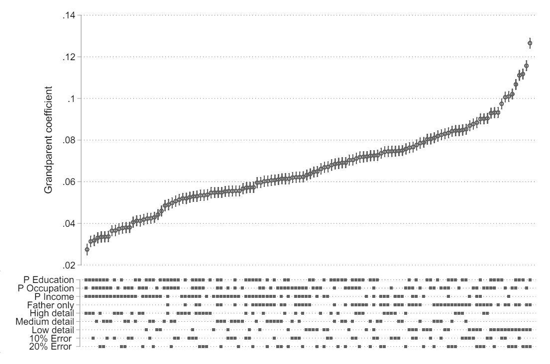 In an excellent paper, Engzell et al. (2020) demonstrated how these problems can manifest in practice. While the statistical points have relevance in many contexts, the specific question they asked was: what is the role of grandparents in social status transmission across generations? That is, do the grandparents’ social status matter net of that of the parents?